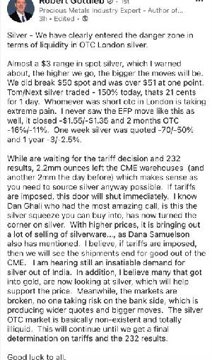 トランプ大統領が銀に関税を課せば、コメックスは即座閉鎖に追い込まれるだろうとしています。