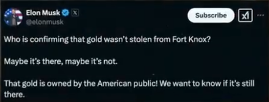 今年に入り、イーロンマスクはフォートノックスの金の監査をすべきだと主張しました。