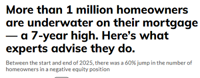 昨年末の時点で、110万件の不動産が「水没状態」であることが判明しました。