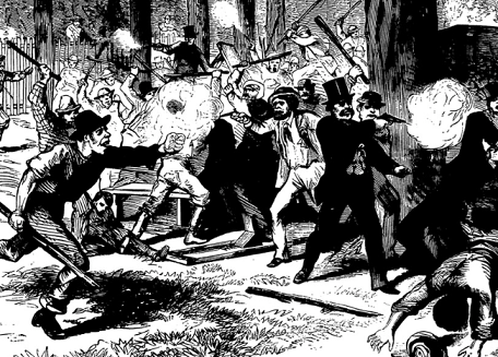 移民たちは反撃をしますが、ストリートバトルでやられたり、追い詰められて逃げ込んだ建物が焼き討ちにあったりして命を落とすことになります、